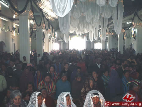 El 17 de Diciembre tuvieron el primer contacto con ICERGUA los representantes de una Comunidad de los Guates, San Juan Sacatepéquez, a la cual, por su compromiso espiritual, le había sido negada la administración de los sacramentos. Está formada por unos 300 adulto y, con jóvenes y niños, llega a unos 1000 miembros. El obispo llegó a visitarles el martes 23 por la noche para dialogar con toda la comunidad y el 25 de Diciembre se celebró una solemne misa. Era la primera Eucaristía que tenían en casi cuatro años. Las lágrimas de gozo se entremezclaban con el entusiasmo que irradiaban los rostros de los hermanos, al ver que el Señor había escuchado su clamor y que les enviaba aquello por lo que tanto habían sufrido y orado. Para el 11 de enero se tiene planificada la celebración de bautismos y la institución de ministros de la comunión, para que puedan tener permanentemente la presencia del Santísimo Sacramento. |