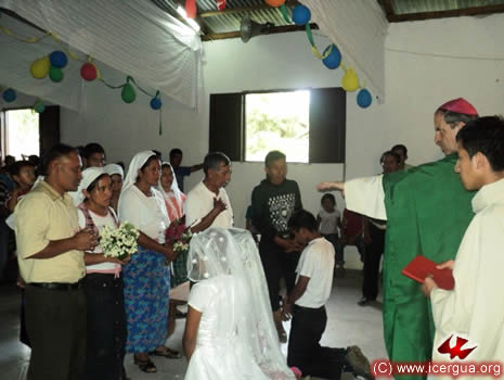 Por la tarde Monseñor visitó la comunidad de Tierra Caliente en Sacapulas, el Quiché. Dos parejas contrajeron matrimonio y durante la celebración, también se administró la iniciación cristiana a cuatro niños, dos de los cuales eran hijos de las parejas que también estaban contrayendo matrimonio. |
