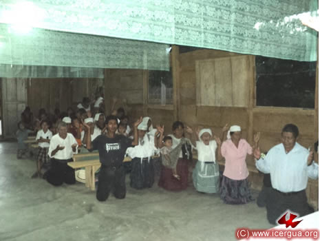 Después del almuerzo, el obispo realizó una visita a la comunidad central de Salquil Grande. Esta comunidad está actualmente en proceso de reestructuración, después de la cresis que pasó re-cientemente y que llevó al naci-miento de una nueva comunidad. El lider de la comunidad es el Hermano Juan Raymundo, quien fue también uno de los fundadores de la Renovación Carismática en el área de Nebaj. |