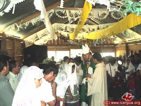 Por la noche del 17, Monseñor presidió la Eucaristía en la comuni-dad de Nucá, Barillas, que es atendida pastoralmente por el Padre Marcos Caicedo. El templo ha sido remodelado cuidadosamente y luece muy hermoso. La casa parroquial está casi concluida. El esfuerzo del Padre Marcos y el apoyo solidario de los hermanos, están dando abundantes frutos. |