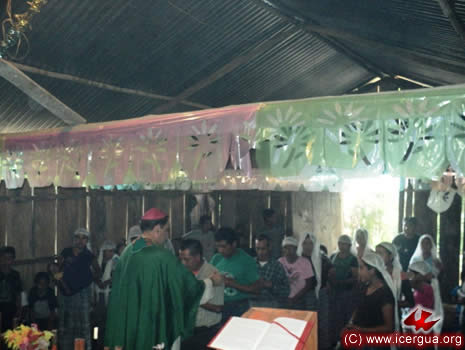 Por la tarde Monseñor celebró con la comunidad de Guaxacaná. Una de las intenciones especiales de la celebración fue orar por la recuperación de la salud del Herma-no Juan, uno de los líderes locales. |