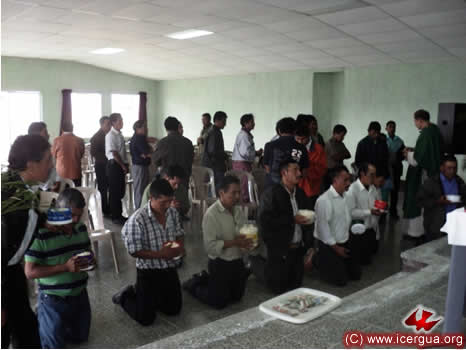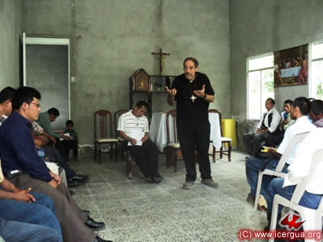 El domingo 13, de las 9 de la mañana a la 1.30 de la tarde, se realizó la formación específica de la Estymla. La sesión estuvo dividida en dos partes. En la primera se analizaron diversos desafíos que afronta actualmente la comunidad y se sugirieron alternativas para poder dar una respuesta positiva a los mismos. En la segunda parte, el obispo compartió una amplia reflexión sobre las características de nuestra misión, la cual había sido compartida con anterioridad en los diferentes Decanatos de Guatemala. A la derecha: algunos de los participantes a la Escuela, junto al obispo, durante el intermedio. |