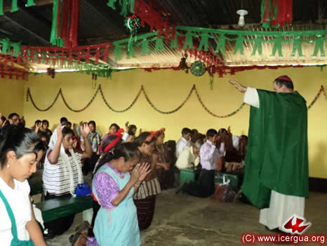 Al caer de la tarde del día 25, la celebración fue en la cabecera municipal de Chisec, Alta Verapaz. La ocasión era la creación de la parroquia de "Cristo Rey". La parroquia está formada actualmente por 13 comunidades, aunque hay varias que están en proceso de incorporarse. De hecho, del día en que se firmó el decreto de creación para el día de su promulgación, ya había ingresado una nueva comunidad. El gozo de la comunidad era patente, pues el ser creados como Parroquia les da una identidad eclesial clara y les permite seguir adelante en su trabajo de evangelización. |