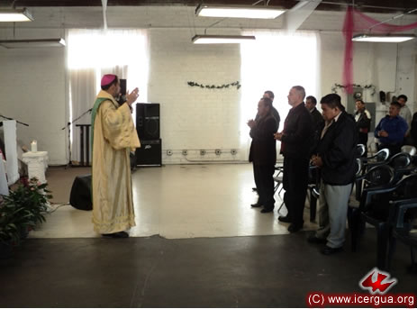 Por la noche, Monseñor Eduardo llegó hasta la comunidad Voz de Restauración, ubicada en la tercera calle del centro de Los Angeles.