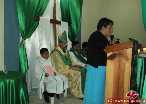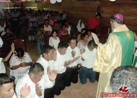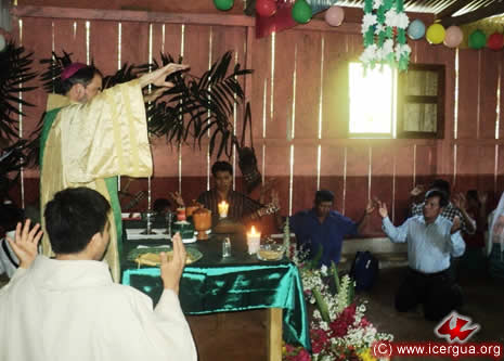 Junto al obispo estaban el Padre Rigoberto Upún, Vicario General de Icergua y co-párroco junto al Padre Francisco Simón de la Catedral. Dado que el Padre Francisco estaba de viaje, los sustituía el recién ordenado Padre Orlando López. |