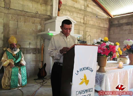 Después de las confirmaciones fueron instituidos dos hemanos para ejercer como ministros de la comunión. Con ello colaborarán con el hermano Simón, único ministro hasta entonces (ora en la foto de la izquierda) y quien ya no puede darse abasto ante el crecimiento de la comunidad. |