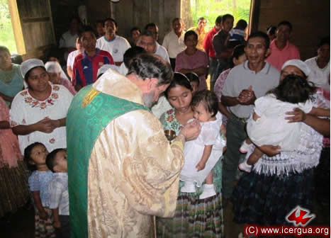 La comunidad de Chuitzanchaj se ha caracterizado porque ya desde hace varios meses ha reconocido el derecho que tienen todos los niños bautizados de participar en la comunión. Los niños han sido preparados por sus padres y se acercan a recibir el divino sacramento con devoción, como puede verse en la foto de la derecha. |