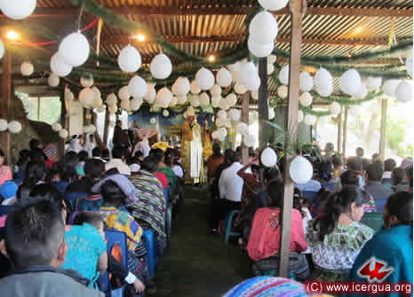El domingo 25 por la mañana, el obispo llegó hasta la comunidad de los Guates, San Juan Sacatepéquez, Guatemala, para presidir la Eucaristía. |