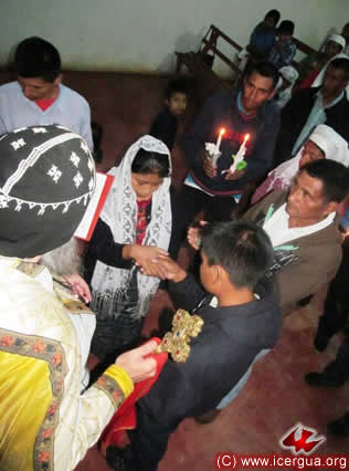El domingo 26 por la mañana, el Arzobispo llegó hasta una comunidad de Cuyotenango, Suchitepéquez, para recibirla como parte de la Iglesia. El proceso de conversión que llevó a su incoporación duró varios meses, hasta que hubieron conocido y profesado íntegramente la fe de nuestra Santa Iglesia. |