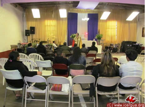 La nueva comunidad, iniciada hace apenas dos semanas, pero que aglutina a fieles provenientes de comunidades de Guatemala que estaban dispersos en Los Ángeles, renta un salón-iglesia, varios días a la semana, incluyendo los sábados. |