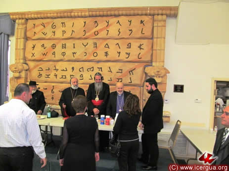 A la izquierda, nuestro Arzobispo con algunos de los miembros del Santo Sínodo: Mor Michael Chamoun, Arzobispo de las obras de Atchaney, nuestro Arzobispo; Mor Julius, delegado para asuntos ecuménicos en Alemania; Mor Diósocor, Vicario Patriarcal de Suecia y Mor Melquías, Arzobispo en Turquía.