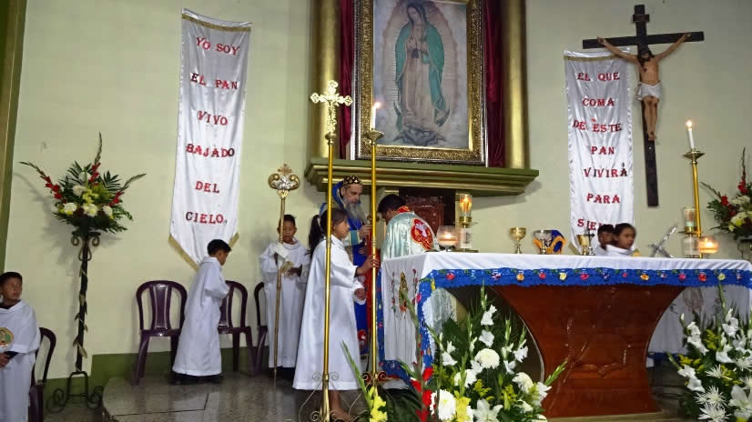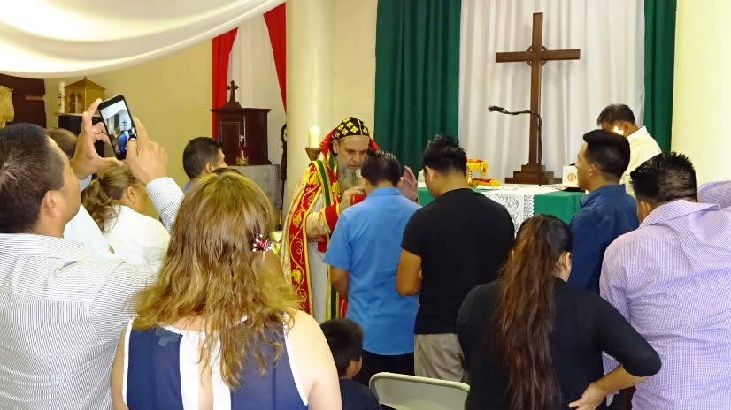 Antes del medio día el Arzobispo presidió la celebración de la Divina Liturgia, con los miembros de las comunidades de Guaymango, que pudieron asistir. Muchos estaban aún trabajando y no pudieron llegar.