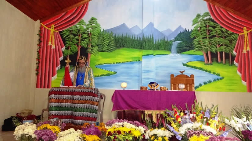 Al caer del día 16, Mor Santiago Eduardo presidió la celebración de la Divina Liturgia en el templo de la comunidad de El Diamante, de Ahuachapán.