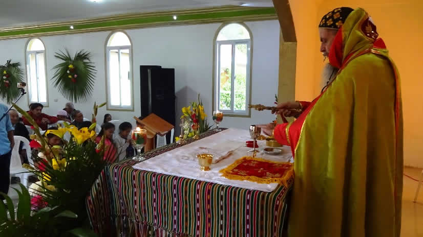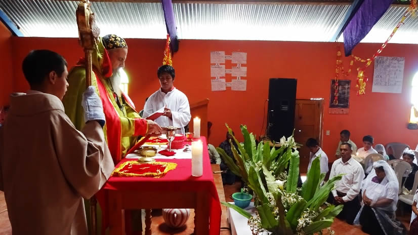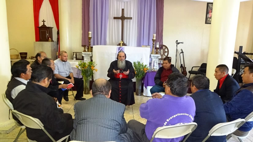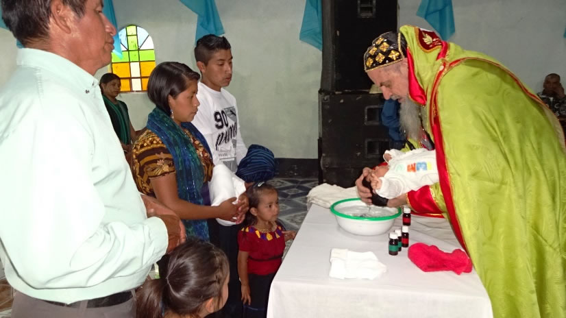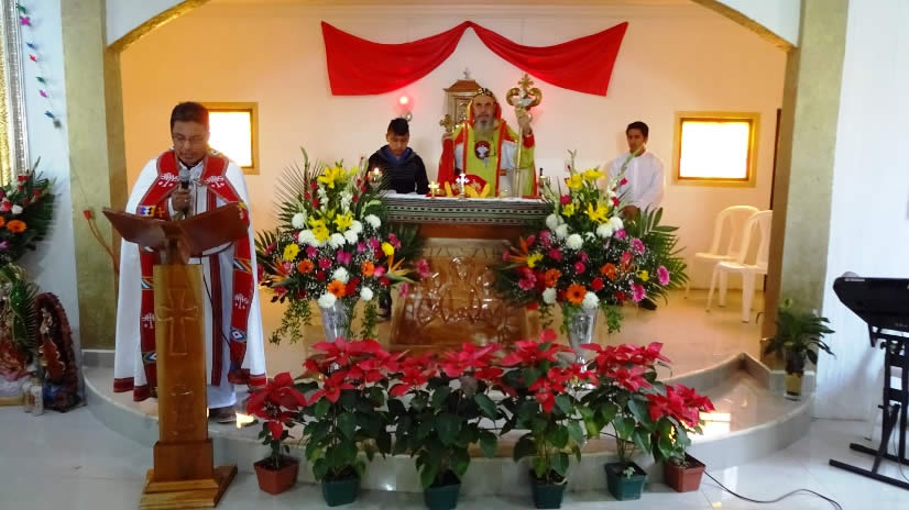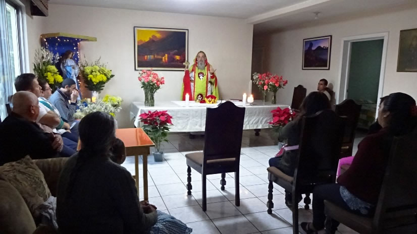 El siete por la tarde, víspera de la celebración de la Concepción de la Virgen María, Mor Santiago Eduardo celebró la divina liturgia con un grupo de fieles de la Iglesia que viven en San Bartolomé Milpas Altas.