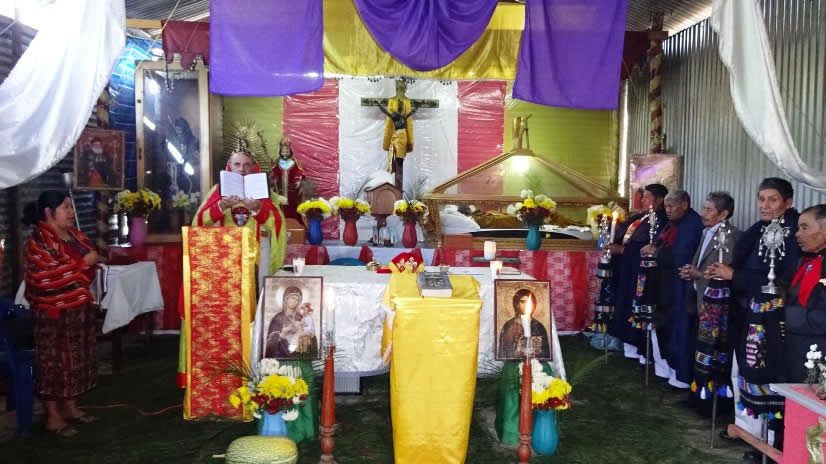 Al caer del día 12, Mor Santiago Eduardo presidió la celebración de la Divina Liturgia con los hermanos de la comunidad central de San Miguel Acatán.