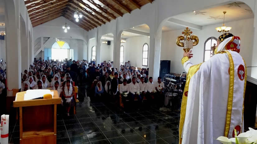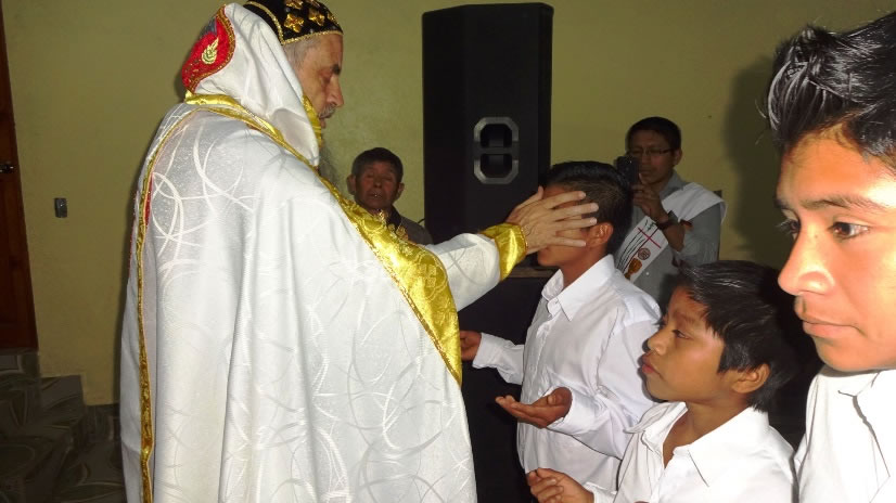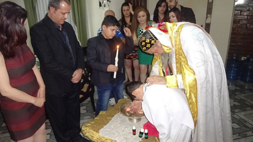 El sábado por la noche, Mor Santiago Eduardo llegó al hogar de una de las familias Batach, procedente de Siria, para celebrar la Divina Liturgia y administrar los sacramentos de la iniciación cristiana a Antonio, un niño de diez años.