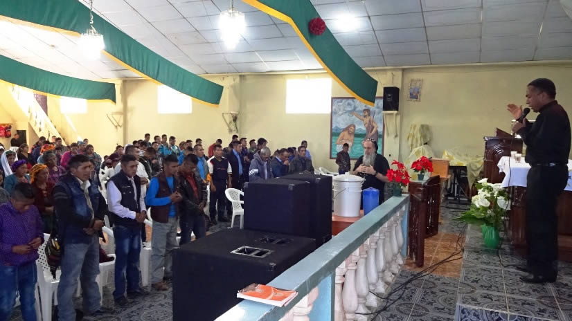 El cinco, después del medio día, Mor Santiago Eduardo, acompañado por el Padre Marcos Caicedo, visitó la comunidad de Yalanhuitz, de San Mateo Ixtatán.