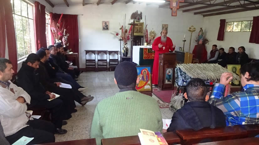 Después de saludar a los hermanos, celebró la Divina Liturgia con los hermanos que estaban presentes.