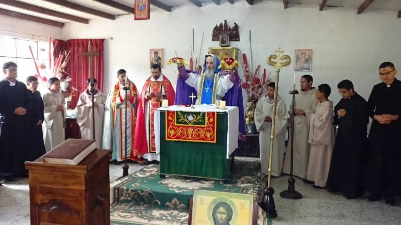 Al medio día Mor Santiago Eduardo presidió la Divina Liturgia en el Seminario Santa María del Nuevo Éxodo, en la que se impuso la ceniza, resultante de los ramos que fueron quemados el día de la Presentación del Señor o Candelaria y los cuales provenían de las ramas con las que se recordó el Domingo de Ramos del año pasado 2016, la entrada triunfal de Jesucristo a Jerusalén.