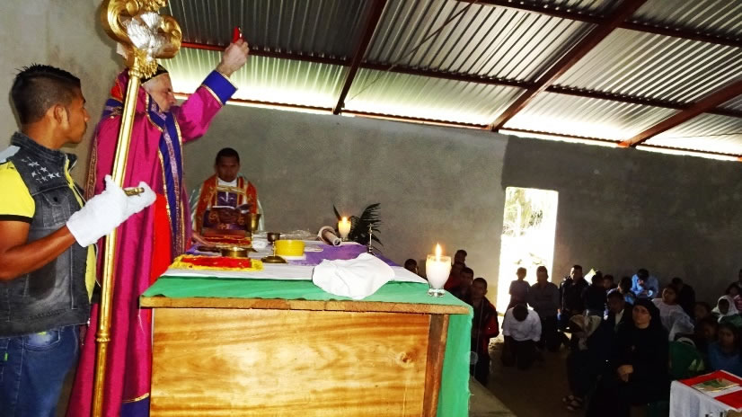 El viernes 10 por la mañana, después de un largo viaje por caminos en condiciones muy difíciles, el arzobispo, acompañado por el Padre Fredy González y por las hermanas Hatune Dogan y Lucía, así como el diácono José Bailiner, llegó hasta el centro pastoral de Sesalché, que hace parte de la parroquia de Jesús el Buen Pastor.