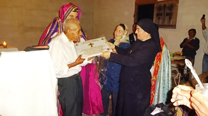 La hermana Hatune entregó la placa conmemorativa y un icono de la Virgen a los hermanos, para recordar la ayuda que ha dado el Padre Gabriel, para la construcción del templo, la cual se encuentra aún en su etapa preliminar.