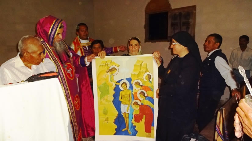 La hermana entregó a los hermanos la placa conmemorativa, así como un icono para recordar el bautismo del Señor por parte de San Juan Bautista y el descendimiento del Espíritu Santo sobre él.