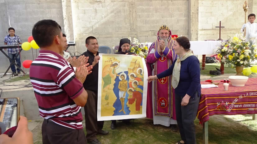 A través de la hermana Hatune, se ha recibido una donación para apoyar la construcción del templo parroquial que se ha iniciado. Ella hizo entrega de una placa conmemorativa que se colocará al terminar la obra, así como de un icono de Pentecostés, para colocar dentro del nuevo templo en construcción.