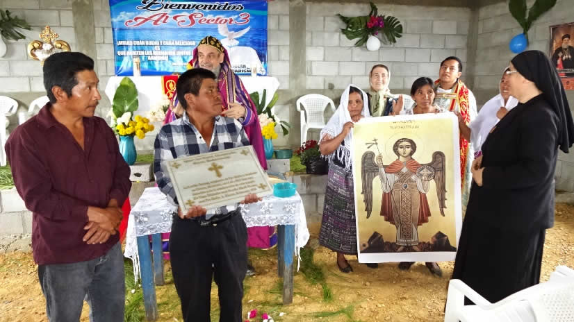 La comunidad local está recibiendo una ayuda para la construcción de su templo, por lo que la hermana Hatune hizo entrega de la placa conmemorativa y de un icono de Pentecostés.