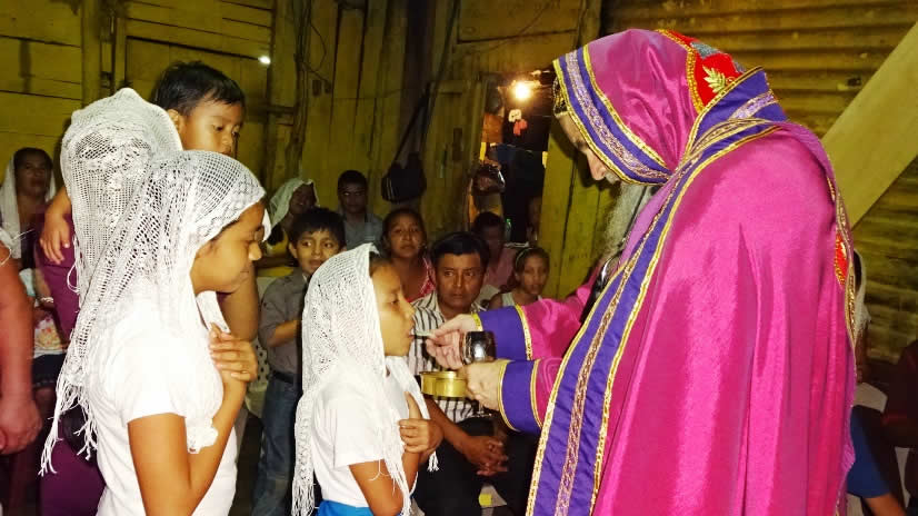 Con ocasión de la visita del arzobispo, se administraron los sacramentos de la iniciación cristiana a dos niñas: Marcela Dominga y Kimberly. La segunda es hija del líder de la comunidad, el hermano Andrés.