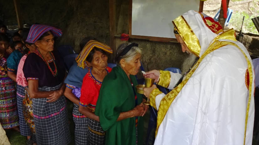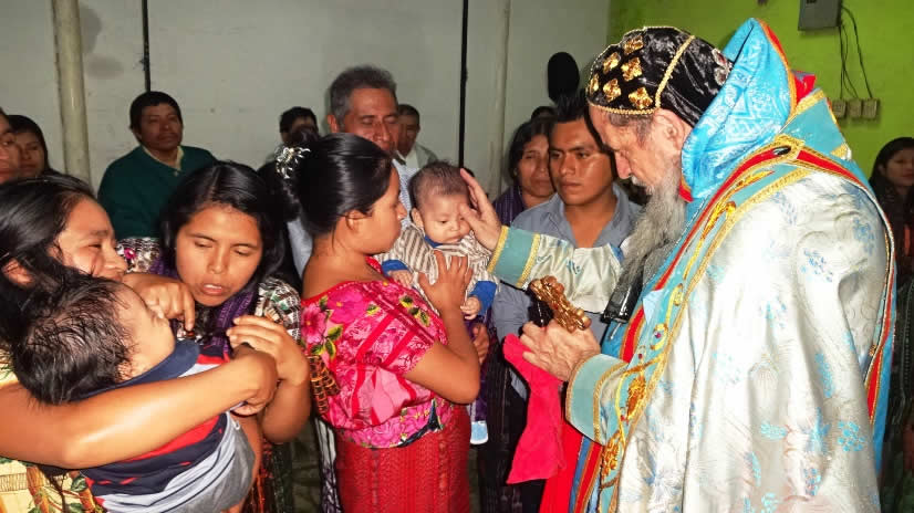 La actividad pastoral del arzobispo concluyó en la comunidad de las Palmas, de San Juan Sacatepéquez, en donde presidió la celebración de la Divina Liturgia.