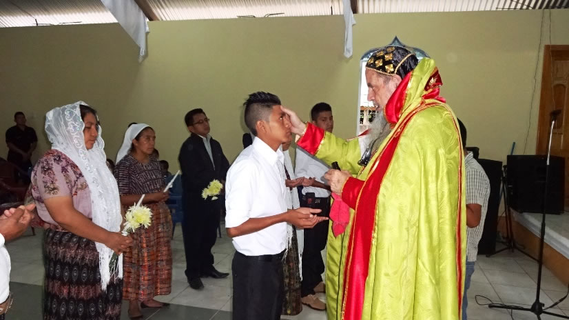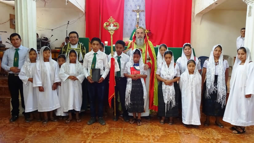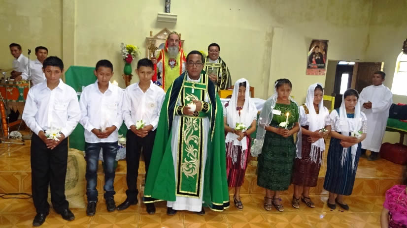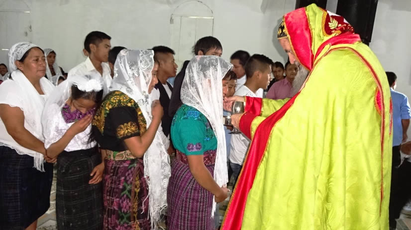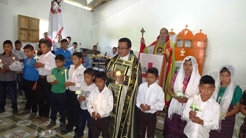 El sábado 29 por la tarde, el arzobispo llegó hasta la comunidad de Manantial Carretera, acompañado por el Padre Hugo Patzán, para presidir la celebración de la Divina Liturgia y para administrar la confirmación y el envío misionero a numerosos hermanos, que habían sido preparados.