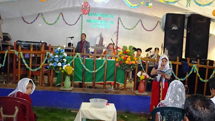 La celebración se llevó a cabo en una galera provisional, pues en la parte posterior, los hermanos están terminando la reconstrucción y ampliación del templo, el cual esperan tenerlo en uso, aunque sea con la parte fundamental, para diciembre.
