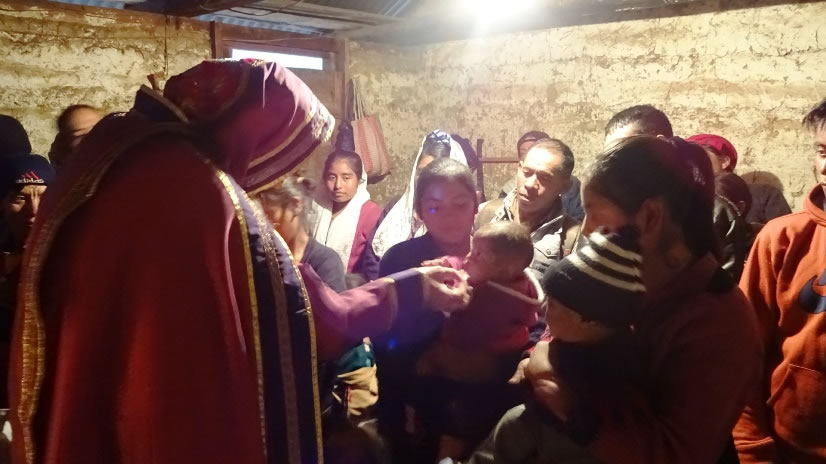 La visita comenzó con la administración del sacramento de la extrema unción de los enfermos a un anciano, padre de los líderes de la comunidad, que además de estar de avanzada edad, se encuentra enfermo.