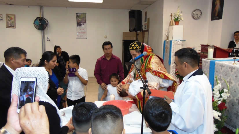 Con ocasión de la visita, además de la celebración de la Divina Liturgia, se administraron los sacramentos de la Iniciación Cristiana a dos niños.