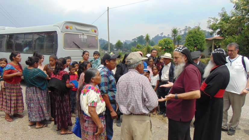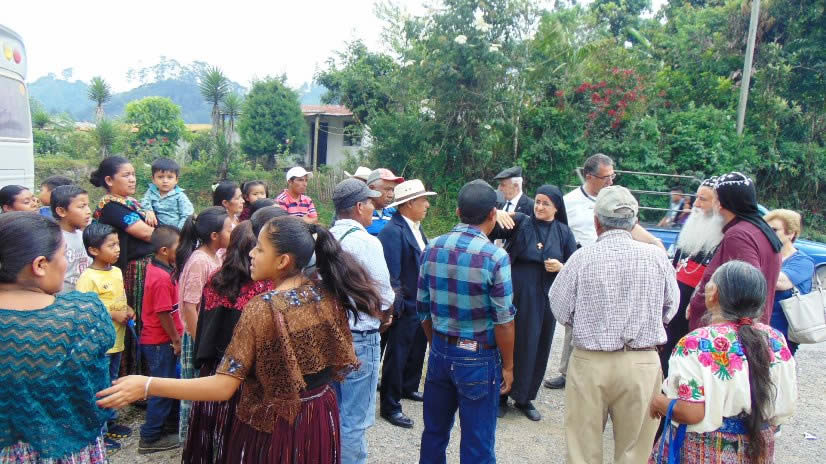 A la llegada a San Mateo Ixtatán, el arzobispo, junto a la comitiva de Alemania, fueron recibidos por el Padre Marcos, párroco local y por unos treinta miembros del consejo pastoral.