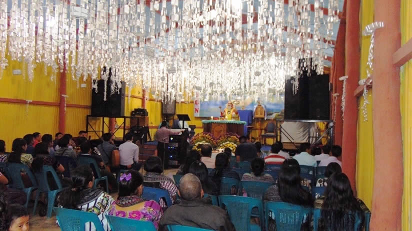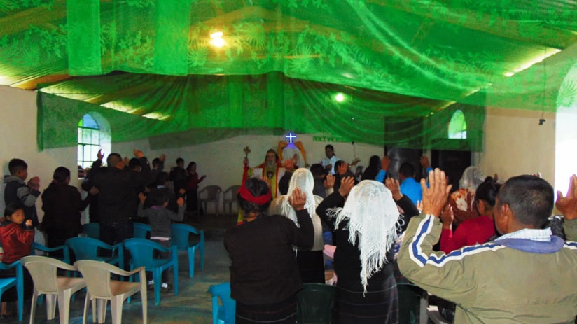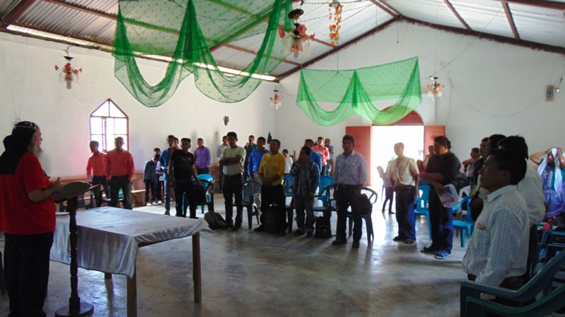 Esta comunidad se caracteriza por su organización y constante crecimiento. En esta ocasión, sin embargo, sólo se encontraba presente menos de la mitad de los fieles. La razón es porque, en este tiempo del año, los hermanos bajan al área cálida, sobre todo a la Democracia, para hacer sus cultivos de milps.