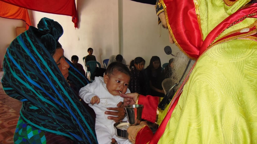 Dentro del marco de la celebración se administraron los sacramentos de la iniciación cristiana a Ignacio, un niñó hijo de miembros de la comunidad.