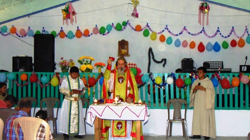 El cinco, al caer el día, el arzobispo llegó hasta la Cooperativa Nuevo Amanecer, en donde celebró en la nueva estructura del templo, que los hermanos acaban de construir.
