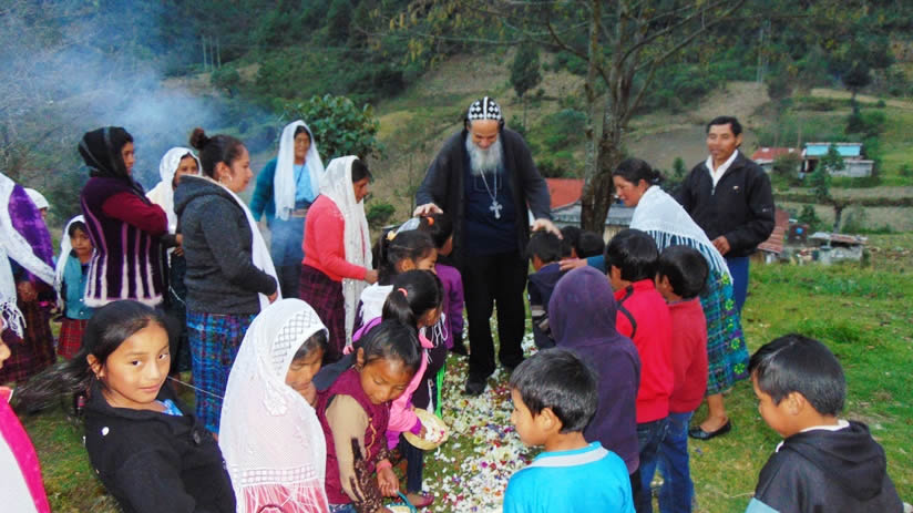 El lunes 7, hacia el mediodía, el arzobispo llegó hasta la comunidad de El Sagrado Corazón de Chancolín, Santa Cruz Barillas, para celebrar la Divina Liturgia.