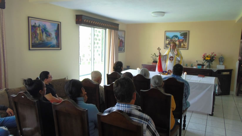 El domingo trece por la mañana, el arzobispo llegó hasta la residencia de la familia Carías Alvarado, para celebrar una acción de gracias por cumplir ochenta y un años la fiel Emperatriz Alvarado de Carías.