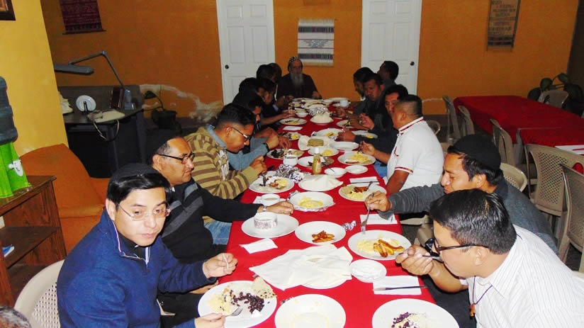 La reunión del presbiterio de la Vicaría de Huehuetenango terminó con el almuerzo y la celebración en honor del sexto aniversario de la Arquidiócesis de Centroamérica en el cumpleaños del arzobispo.