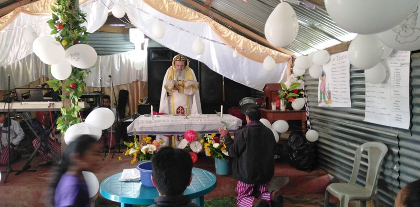 Los hermanos estaban celebrando el aniversario de la comunidad y lo habían preparado con gran entusiasmo. La celebración dio inicio con la santa misa.