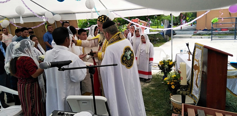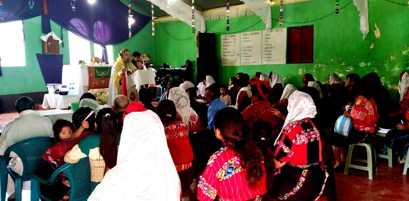 El sábado 25, por la mañana, Mor Santiago Eduardo hasta la comunidad central de Santiago Chimaltenango. Allí, además del pueblo de dios, estaba presente el Padre Pedro Martínez, encargado pastoral del área.