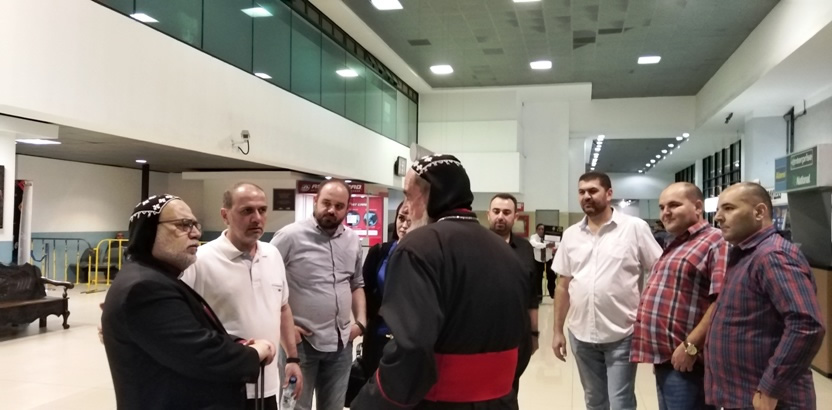 Le recibió en el aeropuerto Mor Santiago Eduardo, así como un grupo de miembros de la comunidad siria de Guatemala.