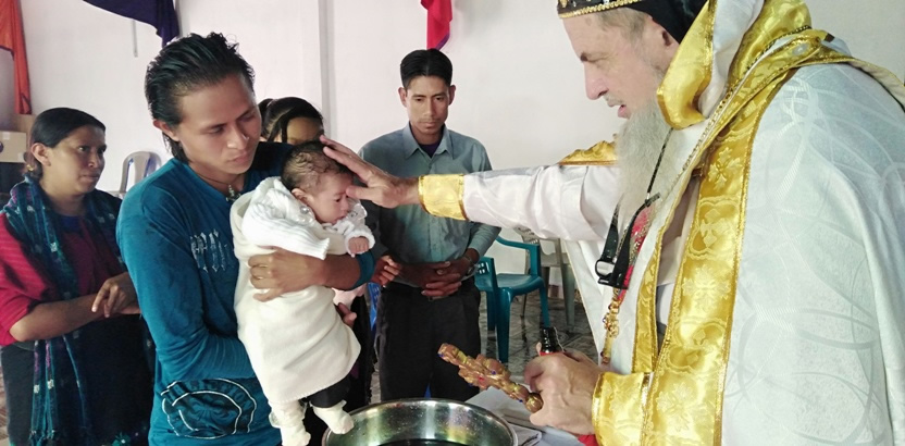 Además de celebrar la Divina Liturgia, el arzobispo administró los sacramentos de la iniciación cristiana a un niño.