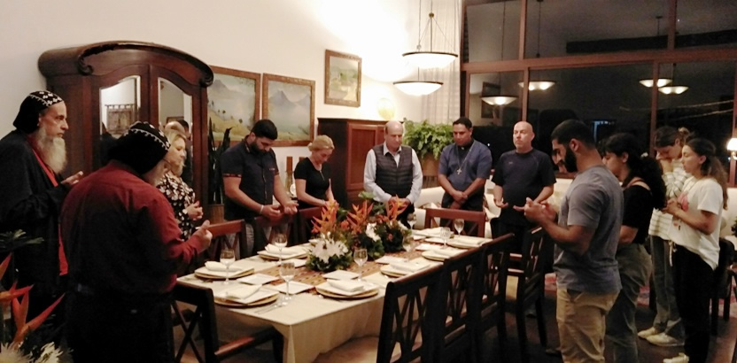 Después de la celebración de la Divina Liturgia, la comitiva, acompañada por Mor Santiago Eduardo, se dirigió a la casa de su hermana en la ciudad de Guatemala, en donde se preparó una cena de clausura de la misión en Guatemala.