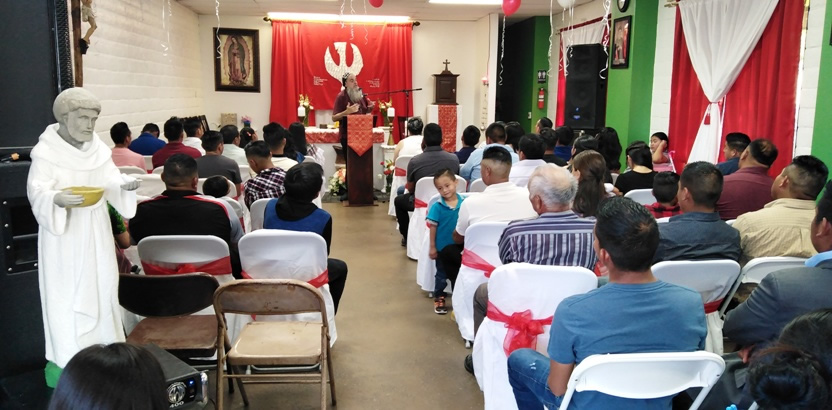 Han alquilado un local y organizado, con todo el entusiasmo, lo necesario para poder tener la iglesia y convertirse, con la ayuda de Dios, en un futuro próximo, en parroquia. |