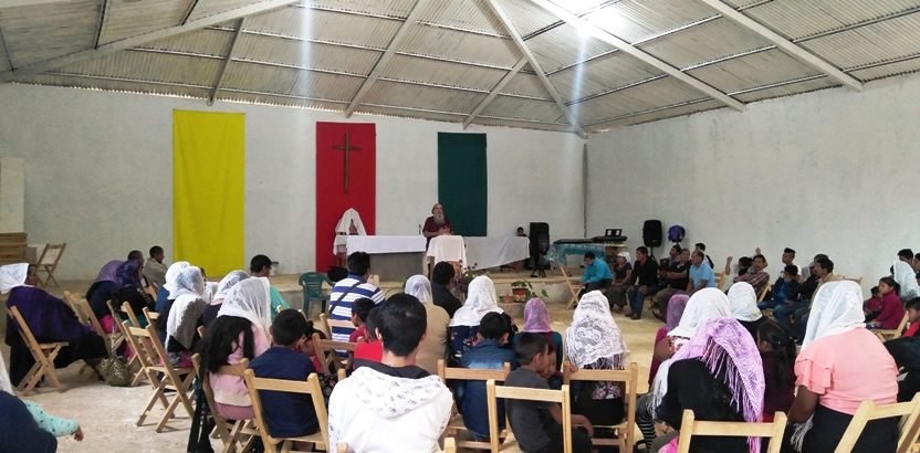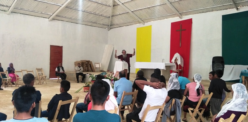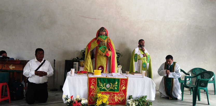 El domingo 21, por la mañana, el arzobispo, acompañado del padre José Hernández, párroco local, llegó hasta la sede parroquial de la parroquia Buen Pastor, Amparo Agua Tinta, Chiapas.