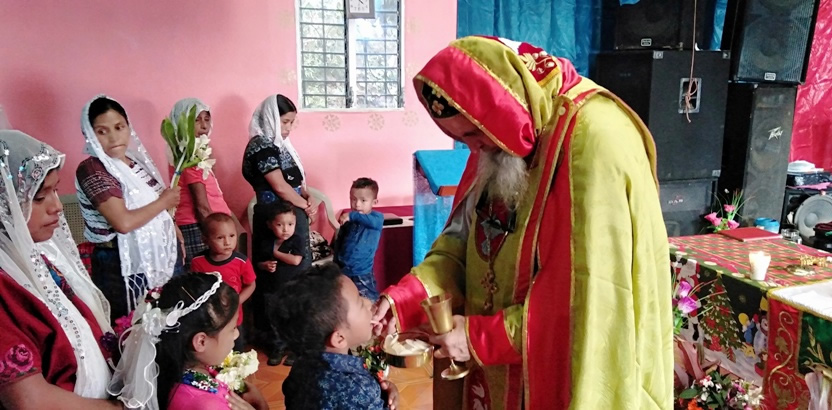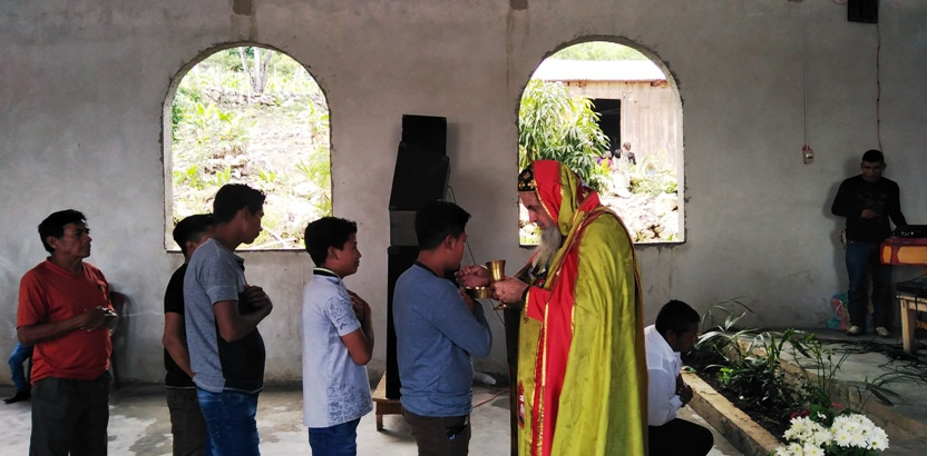 El viernes 26, Mor Santiago Eduardo, acompañado por los diáconos José Bailiner y Norvin, llegó hasta la sede de la comunidad de Ilom, Chajul, Chel.