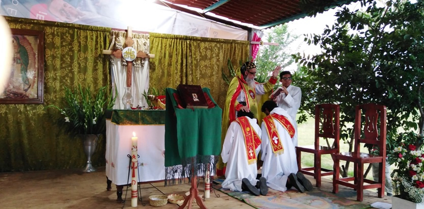 El viernes 23, por la tarde, el arzobispo llegó hasta la sede central de la Misión Santa María de Guadalupe, de Coyotepec, Oaxaca, México, para celebrar la ordenación como diáconos completos, de los sub-diáconos José Juan y Wilber Antonio.